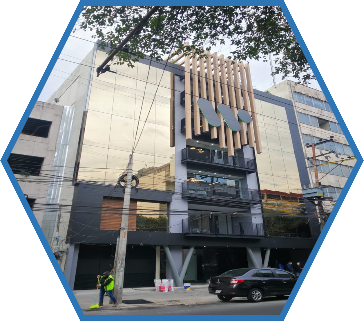 Planta Baja, 3 Niveles de estacionamiento y 2 Niveles de Oficinas.